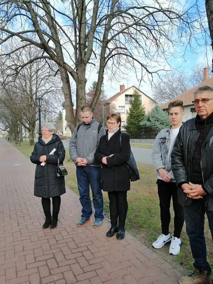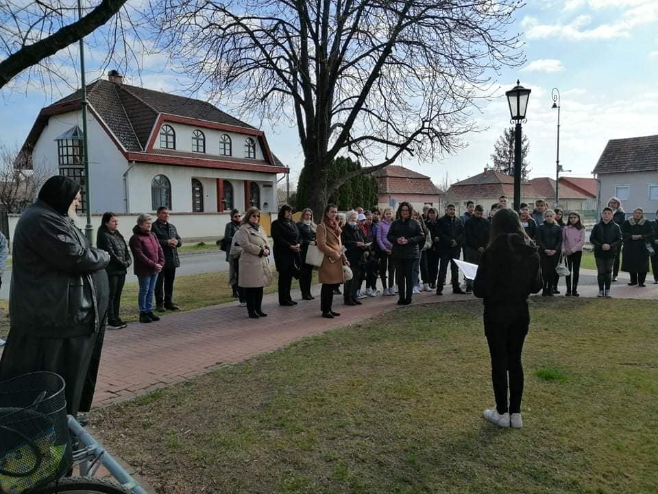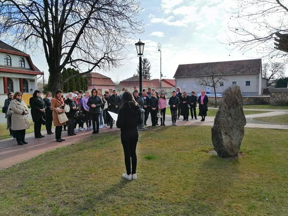 Ez alkalomból a szentmise után a Szilágyi Erzsébet Független Segítő Nőegylet tagjainak közreműködésével koszorúzásra került sor a Templomkertben álló Mindszenty emlékműnél. Verset mondott Hangya Fruzsina 8.b osztályos tanuló.