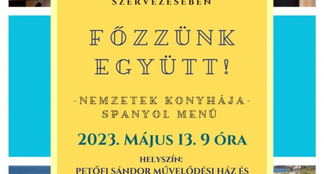 2023. május 13-án, szombaton délelőtt újra Főzzünk együtt!. Török Imréné Marikával fogunk közösen spanyol menüt készíteni. A főzés után együtt fogyasztjuk el az étkeket. A rendezvény ingyenes, de kérjük jelezzen vissza a Facebook eseménynél.